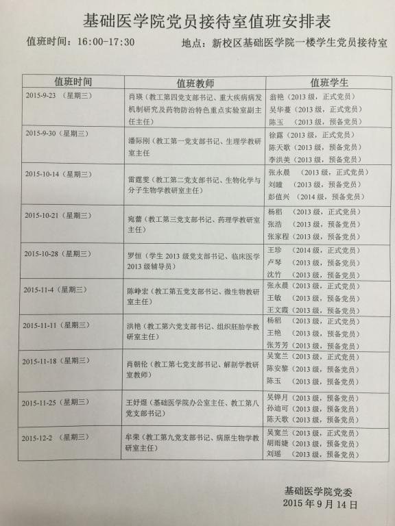 值班时间:16:00-17:30 地点:新校区WilliamHill体育一楼员工党员接待室