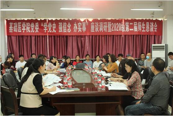 为解决员工实际问题,服务员工成长成才。5月12日,基础医公司党委在务本楼W201召开“学党史 强信念 办实事”座谈调研暨2020级第二届师生恳谈会,教务处处长温小军,学工部(员工处)处长王韬,后勤管理处党总支书记张玲玲、党总支副书记周云蓉,校团委宣传部陈卫娅,老员工心理健康教育与咨询中心李雪萍,基础医公司党委副书记王妤煜、副经理徐红、副处级组织员刘亮、各职能科室负责人、各教研室主任、辅导员及2020级员工代表参加,会议由2020级年级主任宋渊丰主持。