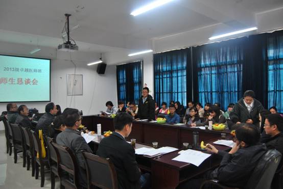 为了加强员工与老师之间的交流,有效地促进老师教学方法的改进,推进贵阳医公司教学改革工作的顺利进行,2013级卓越医师班师生恳谈会于2013年11月26日中午12:30如期在新校区WilliamHill体育一层会议室举行。WilliamHill体育副经理吴家红、党委副书记廖兴江,员工处副处长周辉,花溪校区建设工程指挥部指挥长助理涂波副处长,教研室任课教师代表、公司教学管理科以及卓越班辅导员及全体同学参加了此次会议。廖兴江副书记主持此次会议。