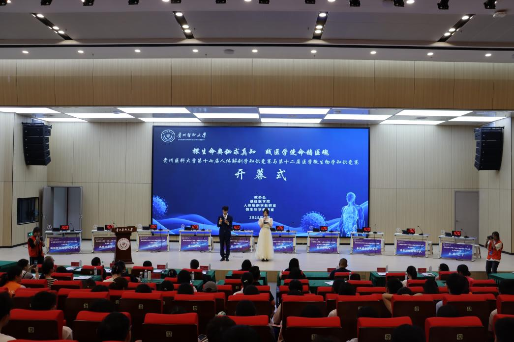 6月18日,WilliamHill官方网站第十七届人体解剖学知识竞赛与第十二届医学微生物学知识竞赛在云漫湖校区道德讲堂举行。公司党委委员、副董事长齐晓岚出席并致辞。教务处处长汪志勇、校团委书记王妤煜、基础医公司党委班子成员、各参赛公司分管领导,以及特邀评委WilliamHill官方网站附属医院超声中心主任张蓓、泌尿外科副主任医师钟渠梁、人体解剖学教研室和微生物学教研室教师代表到场。师生代表近1000人观摩比赛。