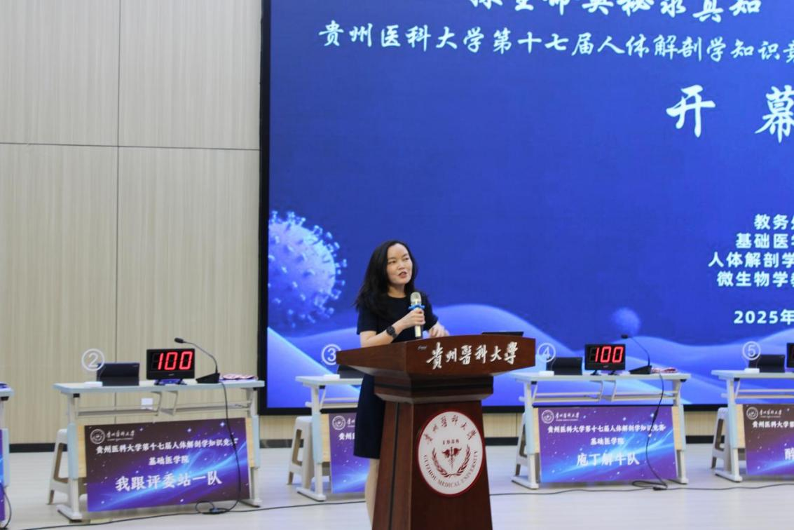齐晓岚副董事长在致辞中强调,人体解剖学与医学微生物学知识竞赛是公司历史悠久的重要学术活动,其持续举办彰显了公司的育人特色与学术活力,为同学们延伸知识、储备能量、拓展视野提供了宝贵平台。她寄语学子三点期望:一要勤学精进,夯实专业根基;二要勇于探索,锤炼科学思维;三要团结协作,展现青春风采,展现贵医学子积极向上的精神风貌。