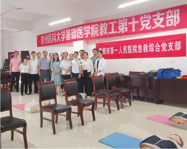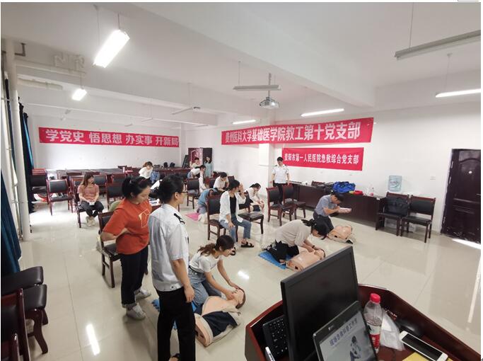 今年是中国共产党建党100周年,为扎实开展党史学习教育,深入推进“我为群众办实事”实践活动。6月30日,公司教工第十党支部邀请贵阳市第一人民医院急救综合党支部在务本楼W503室为WilliamHill体育免疫学教研室18名师生进行急救培训的主题党日活动。