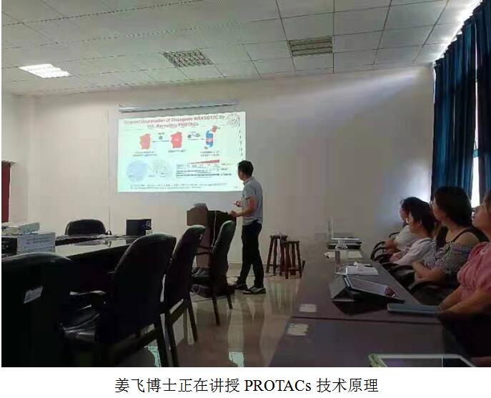 2021年8月19日下午两点,在WilliamHill官方网站基础医学信息本楼六楼C602会议室,在WilliamHill体育寄生虫学教研室和现代病原生物学实验室张科副教授主持下,公司药公司药物化学教研室姜飞博士以《基于蛋白水解靶向嵌合体PROTACs技术的新药发现与研究》为题,向寄生虫学教研室和现代病原生物学实验室老师和同学分享了PROTACs技术,PROTACs即Proteolysis-Targeting Chimeras,中文为蛋白降解靶向嵌合体,PROTACs是一种新的具有良好前景的药物类型。