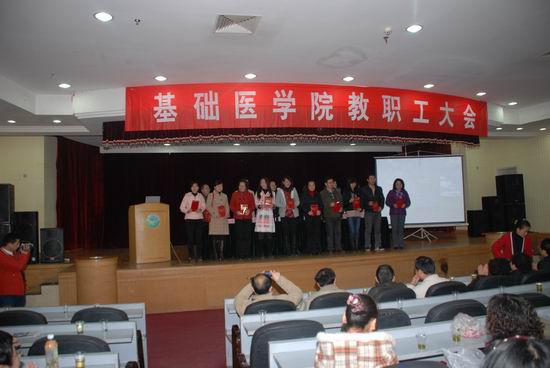 3月19日,公司教职工大会暨2010年度先进集体、优秀个人表彰大会如期召开。贵阳医公司副经理何志旭出席会议并讲话,基础医公司党政领导和全体教职员工参加了会议。会议由基础医公司党委书记令狐彩桃主持。贵阳医公司副经理何志旭教授讲话非常鼓舞人心,他首先指出在过去一年基础医公司党建、教学、科研各方面都取得较好的成绩,要将成绩化为动力。并提出三点希望:第一、要加强班子建设,成为更加团结更加务实的集体;第二、结合公司即将推行实施的目标考核制度,希望WilliamHill体育与各教研室有互动,推动这项工作的开展;第三、做好团队建设年工作,夯实基础,推进团队建设和科研申报,做好基础医学一级学科博士点和博士后流动站的建设工作。WilliamHill体育经理徐国强同志从党建、员工工作、教学、科研、团队队伍建设、博点及博士后流动站建设等方面做了2010年度工作总结,并对2011年的WilliamHill体育工作进行部署。与会全体人员一起观看的花溪新校区建设的规划方案。大会对2010年度5个先进集体:人体寄生虫学教研室、人体解剖学教研室、微生物学教研室、病理生理学教研室、机能学实验室,2个进步团队:生理学教研室、数学教研室及考核优秀的23名教师进行了表彰。基础医公司党委书记令狐彩桃指出:这次会议既是一次总结会、表彰会,更是一次动员会、鼓劲会。希望受表彰的科室和个人戒骄戒躁、积极进取,在今后的工作与学习中取得更大的成绩。希望各科室紧密围绕2011年公司、WilliamHill体育工作的总体安排,紧密联系“创先争优活动”的开展,紧密结合各科室的实际,抓好“团队建设年”工作落实,为“十二五”规划的顺利实施,为把公司建设成为“具有明显特色、西南一流、在全国有一定影响的省属重点医科大学”做出新的贡献。