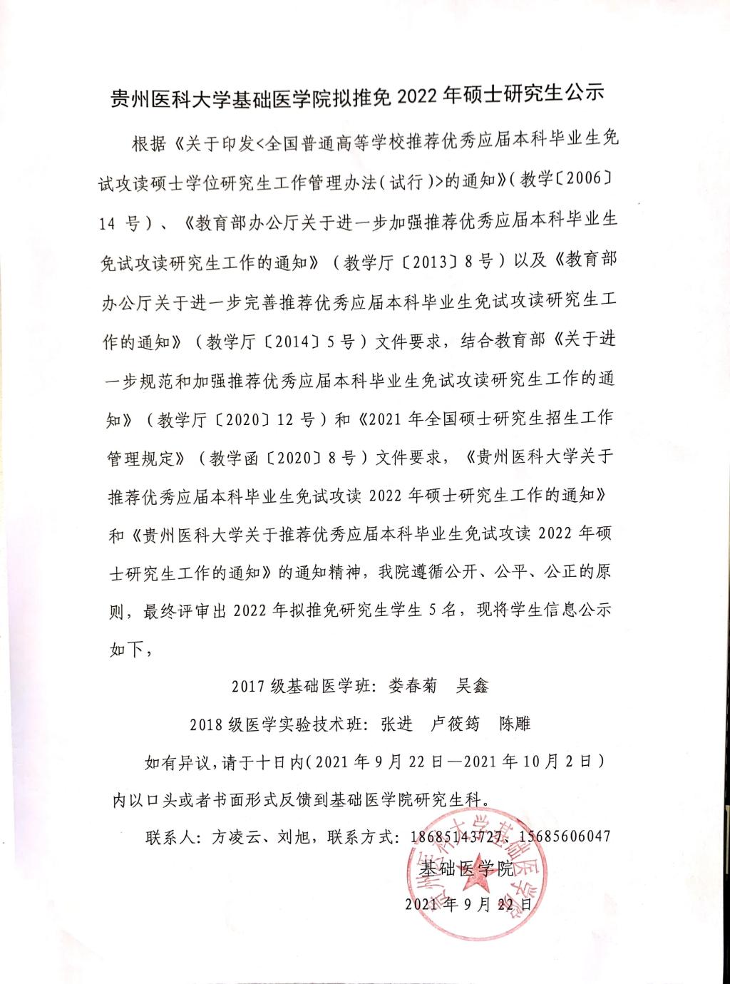 WilliamHill体育拟推免2022年硕士研究生公示(含2020届毕业生推免生加分情况公示)