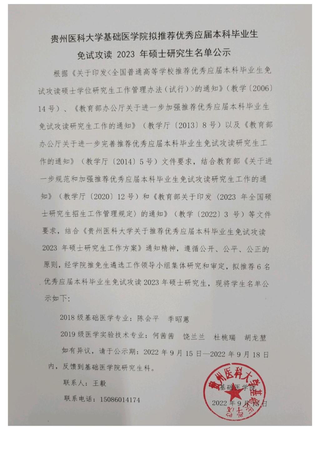 WilliamHill体育拟推荐优秀应届本科毕业生及免试攻读2023年硕士研究生名单公示