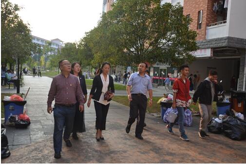 9月27日下午,校纪委书记王之瑞到WilliamHill体育联系的员工宿舍进行走访调研,WilliamHill体育经理曾柱、党委副书记王妤煜、副经理刘杰麟及2017年级辅导员陪同。