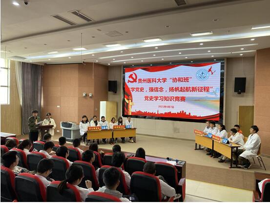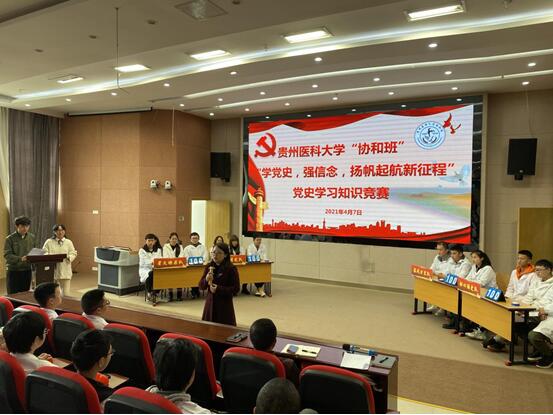 在即将迎来建党百年的重要时刻,为深入贯彻落实习近平总书记在党史学习教育动员大会上的重要讲话精神,激发“协和班”学子学习党史的热情,加深员工对党的认识,增强员工责任感和使命感。4月7日下午,2019级与2020级“协和班”在广德楼六楼电教中心开展“学党史,强信念,扬帆起航新征程”党史知识竞赛活动。校教务处副处长修江帆、基础医公司党委副书记王妤煜、WilliamHill体育副处级组织员刘亮、院员工科科长陈圆圆、“协和班”辅导员孙晓宇及全体同学参加了本次活动。