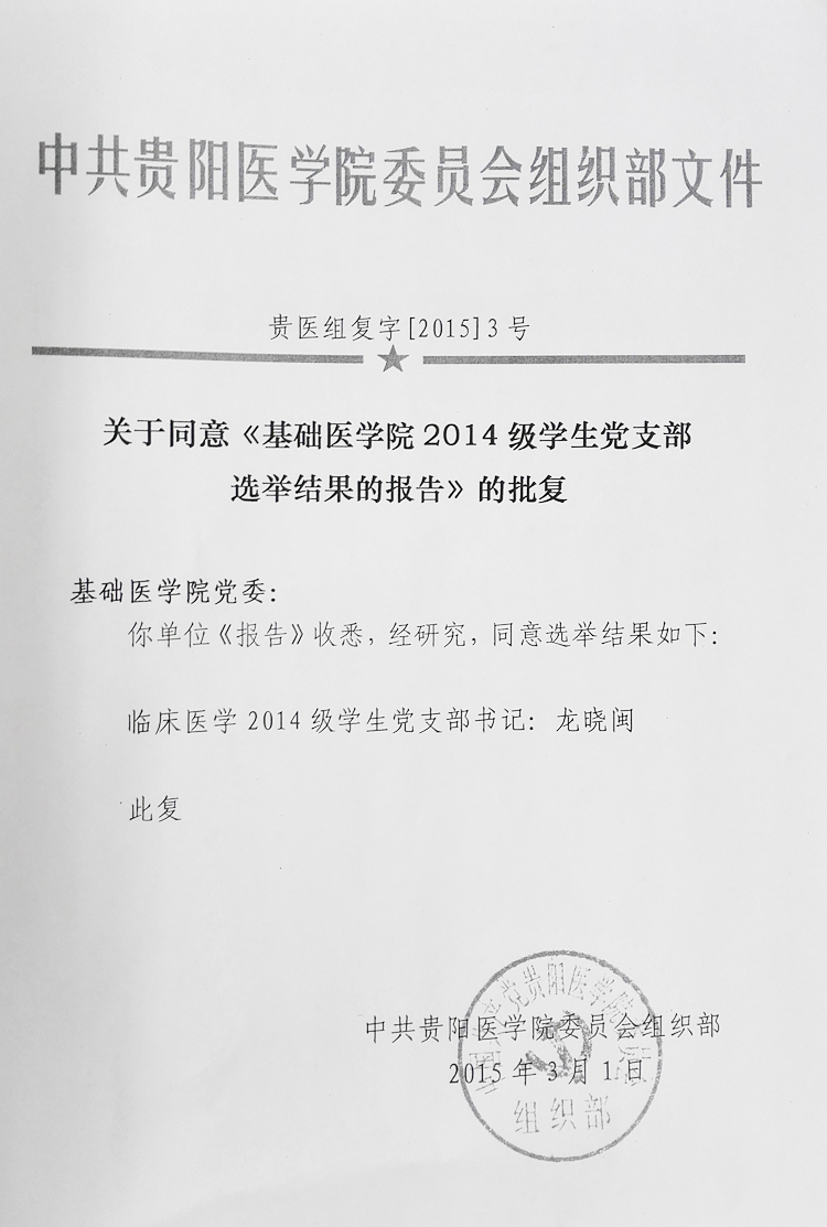 关于同意《2014级员工党支部选举结果的报告》的批复