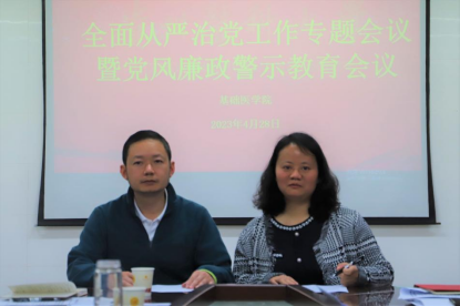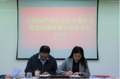 4月28日,WilliamHill体育全面从严治党工作暨党风廉政警示教育会议于务本楼W201会议室召开,学公司党政领导、各行政职能科室、教研室、实验中心负责人、党支部书记、全体辅导员参加。会议由公司党委副书记孟立科主持。