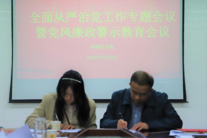 肖绚要求,要压紧压实责任,确保任务落实,加强监督考核,严肃追责问责。全面推进从严治党一是要加强党的政治建设,坚决做到“两个维护”;二是深入学习党的二十大精神,加强政治理论学习,加强《党章》学习,不断提高政治素养,用理论武装头脑;三是加强基层党组织建设,进一步规范“三会一课”和主题党日等相关组织活动。四是深化党风廉政建设,聚焦“关键少数”,重视“绝大多数”,从严从实加强自身建设,严格执行中央八项规定,切实纠治形式主义、官僚主义。五是落实意识形态工作,进一步压实意识形态责任,抓牢意识形态研判,严把意识形态审批。六是做优新闻宣传,重视宣传、懂得宣传、及时宣传,提量增质,加强内容挖掘“深度”,强化新闻宣传的力度和实效,着力讲好新时代公司故事。党风廉政建设永远在路上,希望大家在工作中要做到慎独、慎微、慎言、慎行,心怀敬畏、不忘初心、爱岗敬业、潜心治学、虔诚问道、悉心育人,为促进公司教育高质量发展贡献自己的力量,为奋力谱写“百年贵医”建设高质量发展新篇章提供坚强保证!