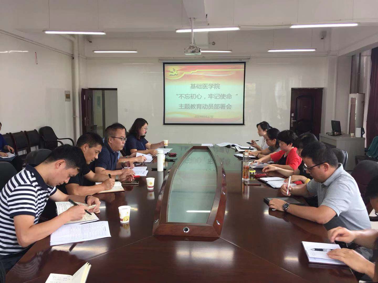 会上,曾柱传达了公司“不忘初心,牢记使命”主题教育工作动员部署会会议精神,强调每个党员要深入学习贯彻习近平新时代中国特色社会主义思想,把主题教育作为当前和今后一个时期的重大政治任务。并代表基础医公司党委和主题教育领导小组就如何开展主题教育提出三点要求:一是提高政治站位,深刻认识开展主题教育额重大意义,在全党开展“不忘初心,牢记使命”主题教育是新时代坚持思想建党,理论强党的有力措施,各党支部,全体党员干部务必领会,提高站位,充分认识这次主题教育的重大意义,切实增强开展主题教育的思想自觉,政治自觉和行动自觉;二是强化政治担当,根据中央主题教育的指导意见、贵州省和WilliamHill官方网站主题教育实施方案的要求,基础医公司党委对深入开展主题教育作了系统的安排,成立了工作小组,制定了具体的实施方案,各部门要准确把握,认真落实,通过主题教育提高老师的精气神、事业心、责任心,加强主动学习,提升党员干部勇于担当的能力,始终保持干事创业和攻坚克难的精气神。三是压实政治责任,党支部要站在讲政治的高度,切实开展主题教育,扎实有序推进,促进公司“双一流”建设工作,确保主题教育取得实实在在的成效。