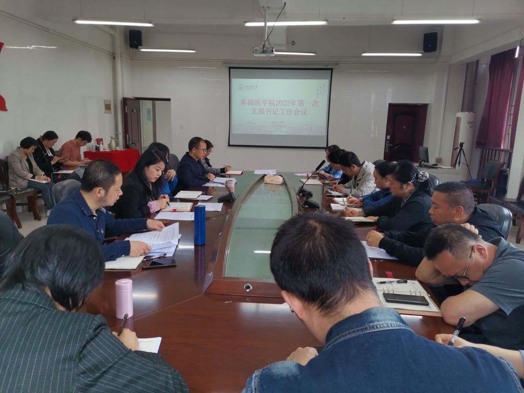 2022424日中午,基础医公司党委在务本楼二楼会议室召开2022年第一次党支部书记工作例会,传达学习公司党委抓党建工作成效考核工作部署会议精神并作工作安排部署。会议由公司副处级组织员刘亮主持,公司全体党委委员和支部书记参会。