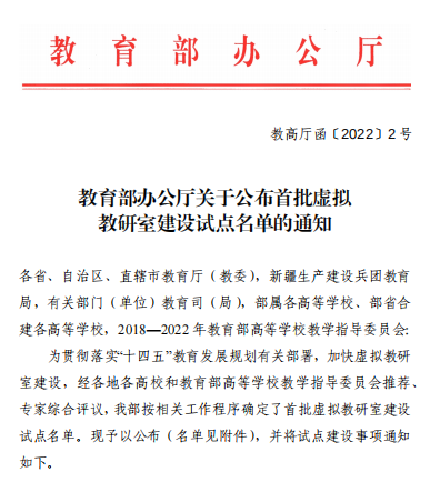 WilliamHill体育参与申请的两个虚拟教研室获批教育部首批虚拟教研室建设试点