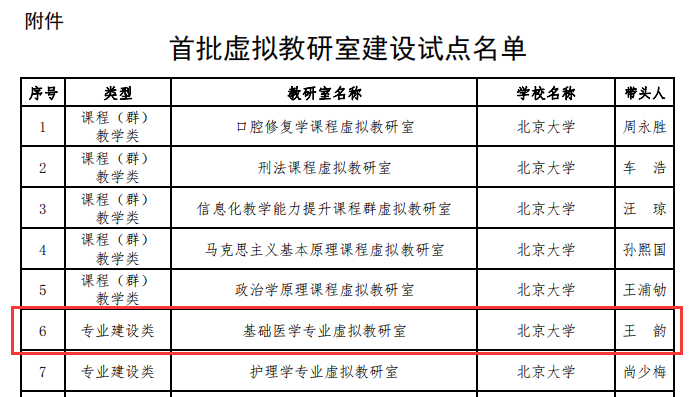 近日教育部发布《教育部办公厅关于公布首批虚拟教研室建设试点名单的通知》,公司WilliamHill体育参与申请的协和医公司王辰院土作为带头人的“生理课程虚拟教研室”、北京大学王韵教授作为带头人的“基础医学专业虚拟教研室”获批教育部首批虚拟教研室建设试点。