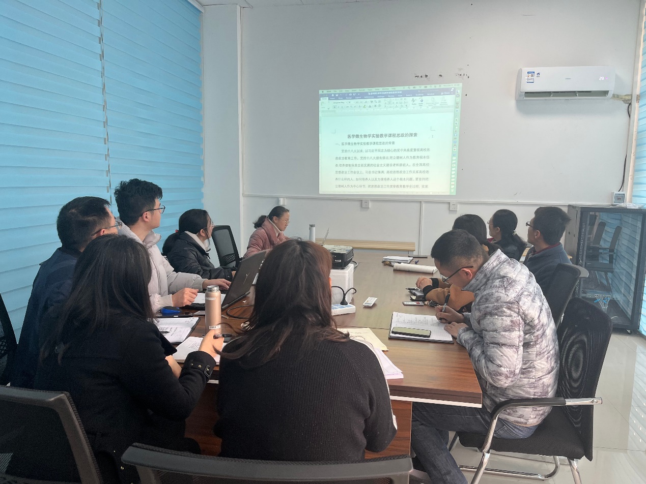 2021年12月21日,在微生物学教研室的青年教师教学能力提升专题研讨会上,青年教师张峥嵘以“医学微生物学实验教学课程思政的探索”为题和老师们进行了分享与探讨。